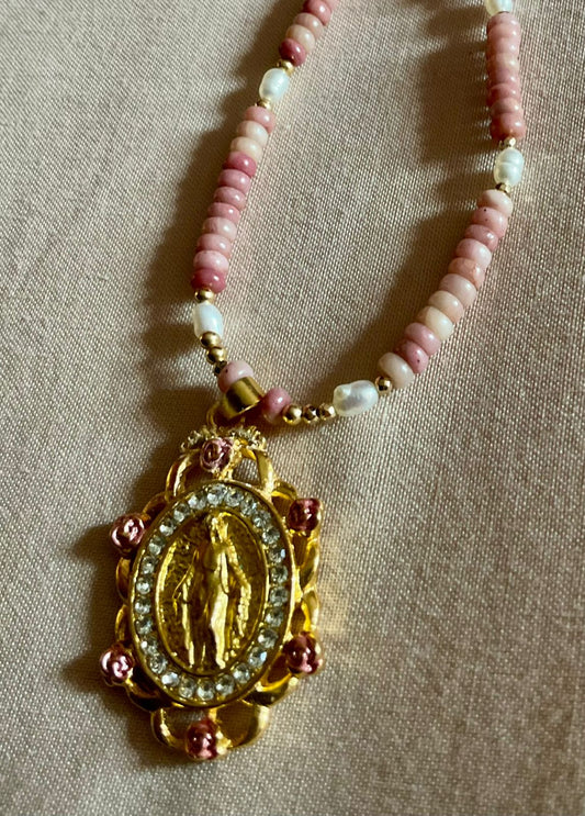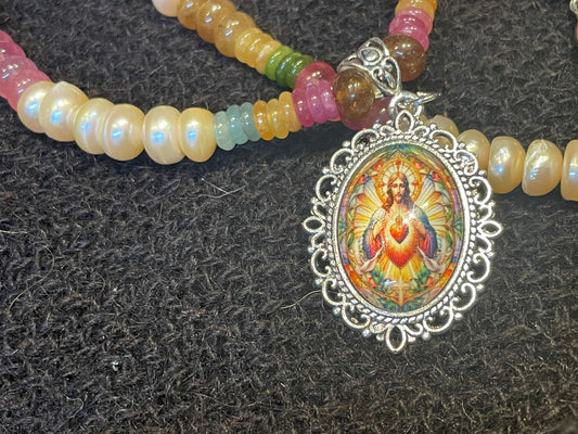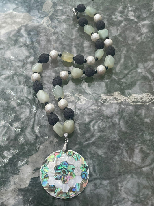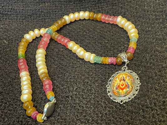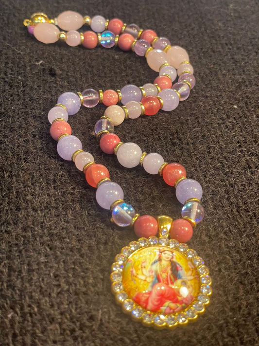 Collar del trébol de la buena fortuna ágatas verdes y rosas