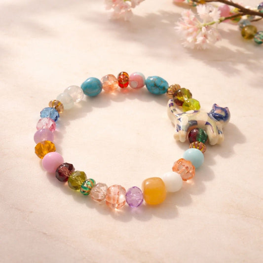 Pulsera gemas y acrílicos de alta gama con gatito hecho a mano en cerámica