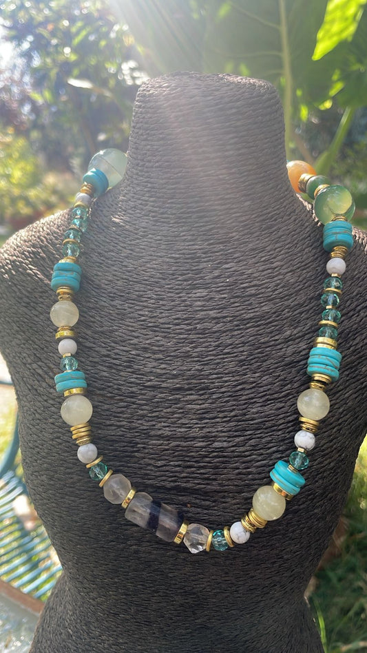 Aros y Collar de turquesa y perlas con la Santa muerte: un poderoso protector contra la envidia u la mala energía