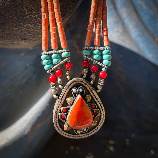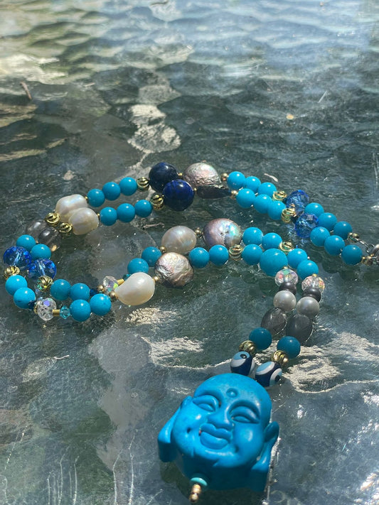 COLLAR DE CORAL, LAPIZ LAZULI, ÁGATAS AZULES DE LA ALEGRÍA Y ESPIRITUALIDAD